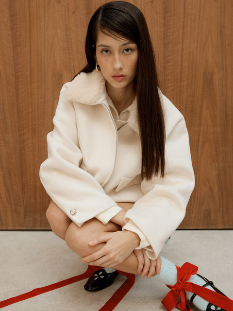 [주크] 핸드메이드 퍼 카라 집업 숏코트 IV_Z254MSG506