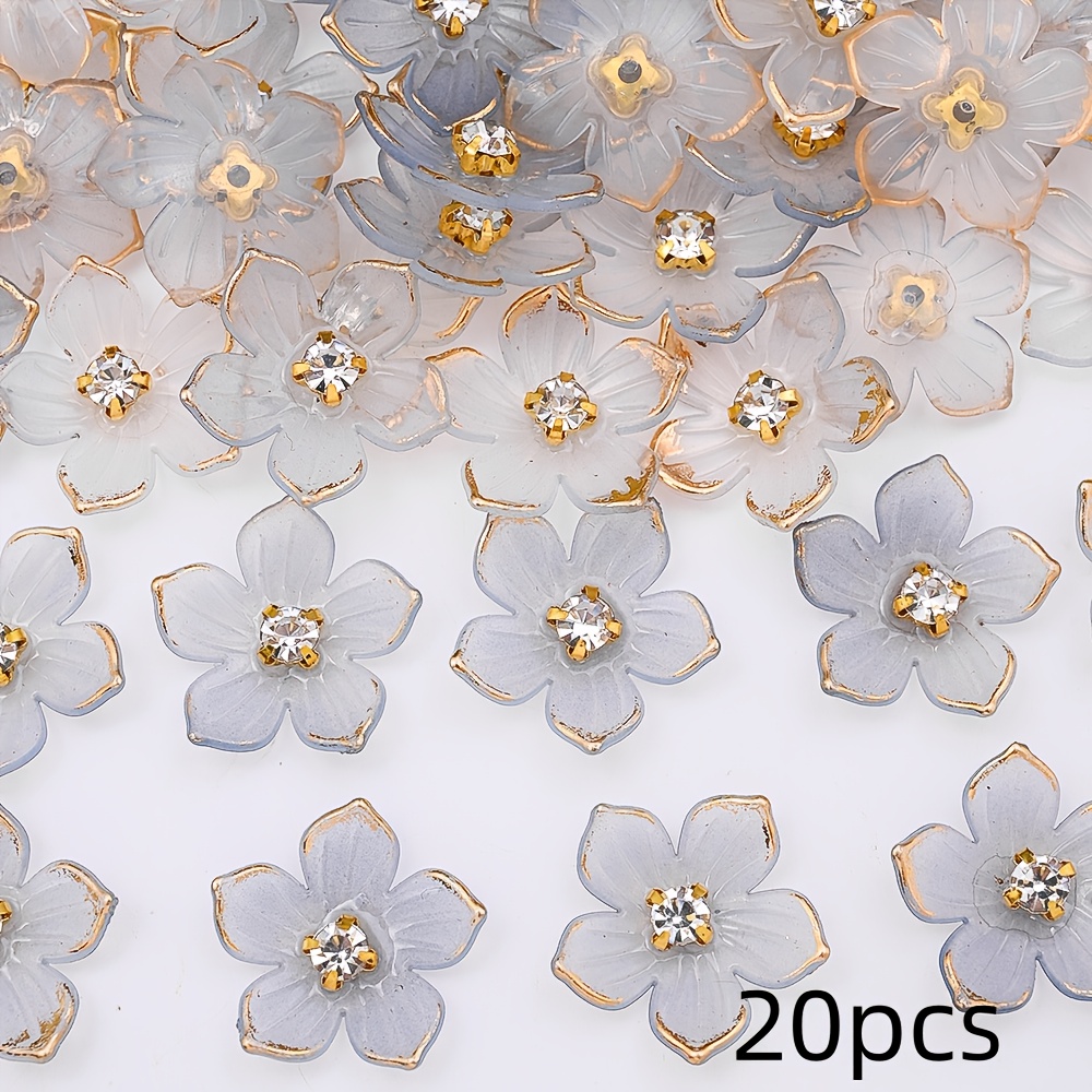 TEMU 2D 플랫 - 20개입 대형 23mm 투명 꽃 비즈, 골드 엣지 라인스톤 꽃대 특징. 귀걸이, 팔찌, 헤어 클립 등 주얼리 제작에 적합. 의류, 모자, 가방, 코트 장식에 좋습니다.