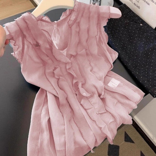 제로투올샵2 / 프렌치 핑크 러플 슬리브리스 셔츠 핑크 S