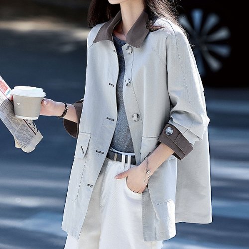 TEMU 우아한 숏 지퍼 트렌치 코트, 칼라 디자인으로 캐주얼한 휴가 및 가을-겨울 출퇴근에 완벽