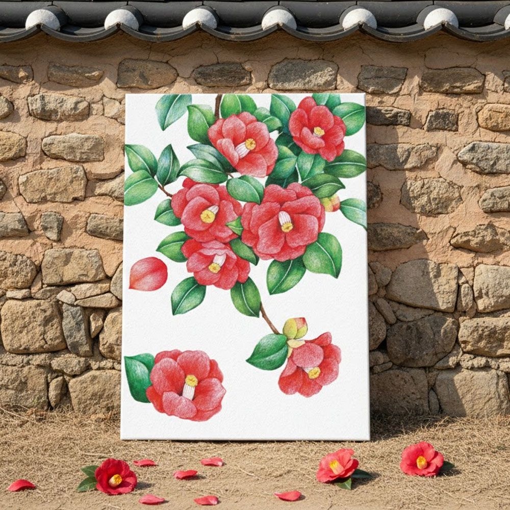 모소 작가 제주동백 작품 캔버스 액자 A3