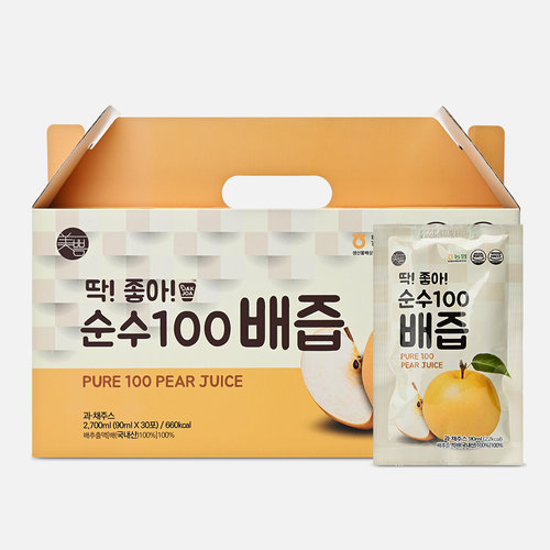 미쁨생활건강 딱좋아 국내산 순수100 배즙 90ml 1박스 (총 30포)