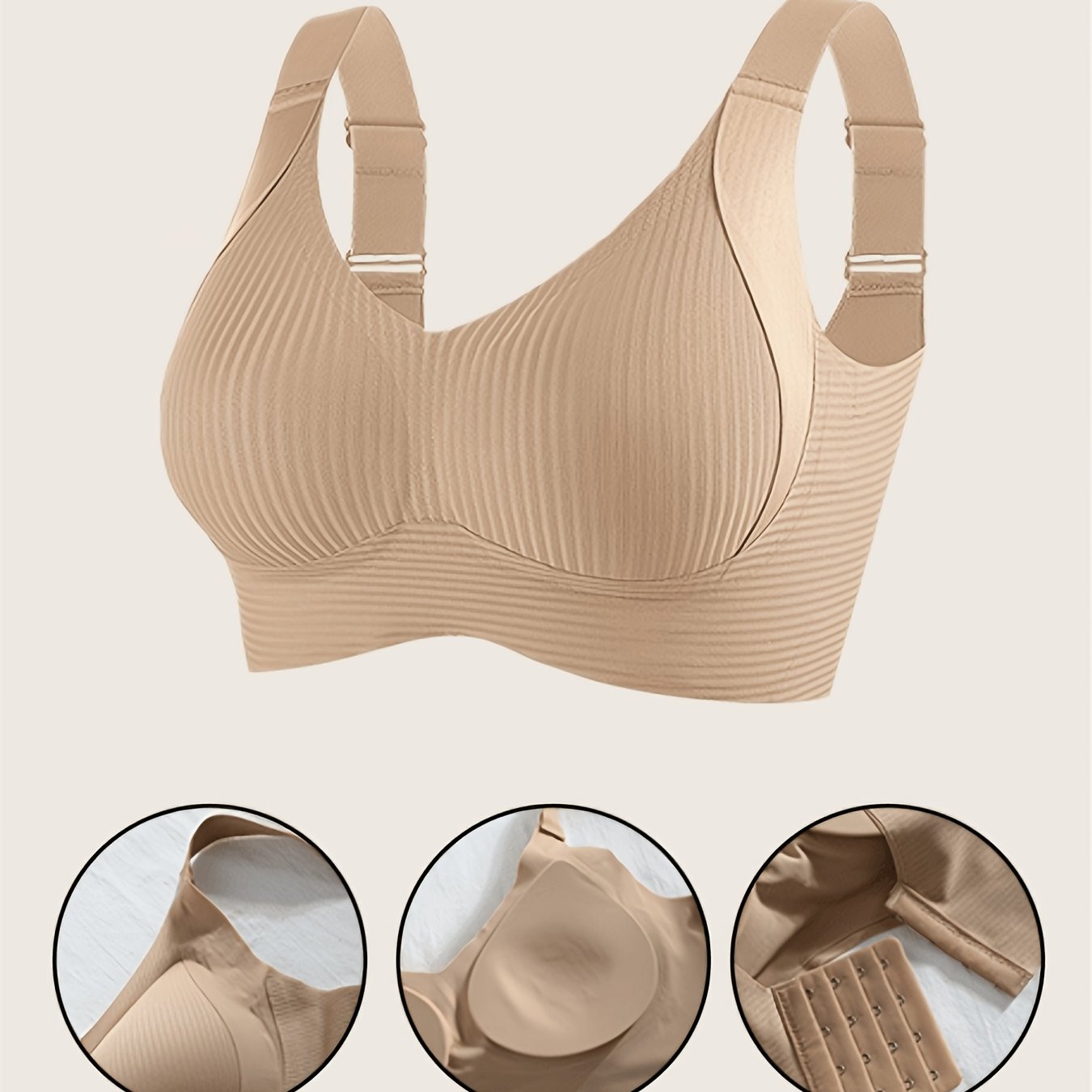 TEMU 2026 봄 신상 여성 플러스 사이즈 풀 커버리지 푸쉬업 브라 - 무선, 조절 가능한 스트랩, 심리스 디자인, 탈착식 패드 및 사이드 포함 - 편안한 캐주얼 웨어, 일상적인 운동에 적합