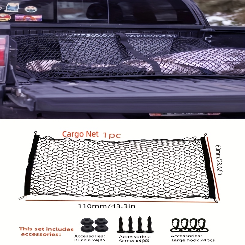 TEMU 1세트 범용 스트레치 트럭 베드 네트, 구성: 1개 카고 네트 + 패스너 4개 + 나사 4개 + 대형 후크 4개, 트레일러 고탄성 카고 네트, 폴리에스터 테일게이트 정리함, 다용도 경량 사용