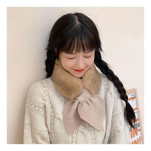 1+1 겨울 리본 니트 퍼 여자 선물 쁘띠 목도리 머플러 (WD4D9F6)