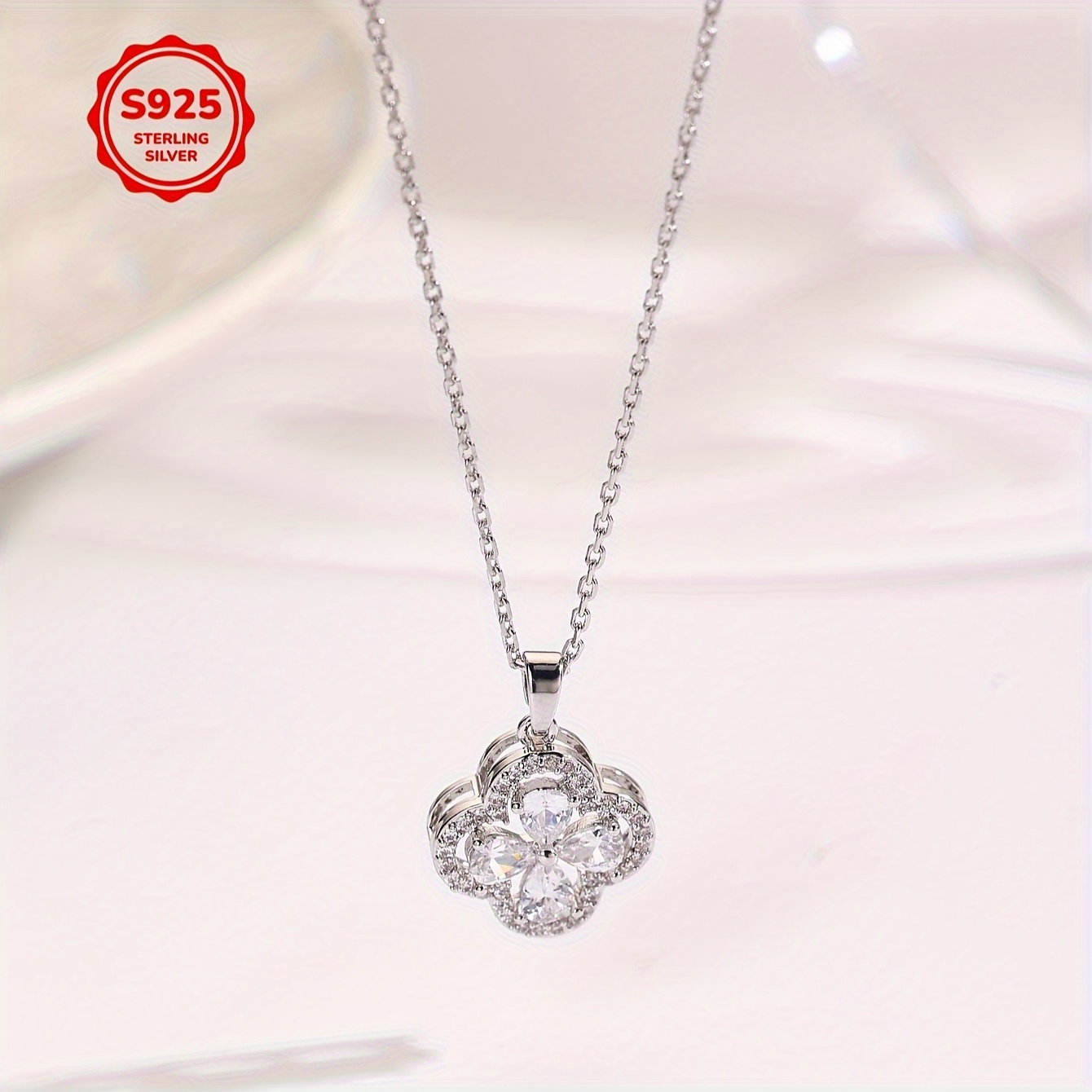 TEMU 1개 스털링 실버리 홀로우 펜던트 목걸이 여성용, 니치 라이트 럭셔리 하이엔드 행운의 클로버 참 클라비클 체인, 다재다능한 패션 우아한 기질 데일리 커뮤트 액세서리