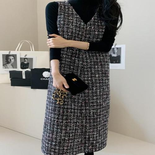 [렐라웨어](웨어렐라) 리밍 브이넥 트위드 조끼 원피스