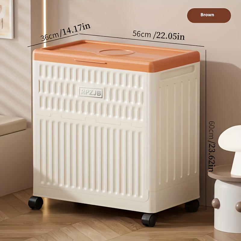 TEMU 헤비듀티 롤링 보관함 - 잠금 뚜껑 & 4륜 이동식 - 화이트 & 브라운 플라스틱 정리함 (옷, 팬트리, 기숙사용) - 한 손으로 쉽게 들어올리는 내구성 다목적 카트 (공구 없이 간편 조립), 보관 및 정리, 보관함, 적층 가능한 수납, 옷장 보관 및 정리