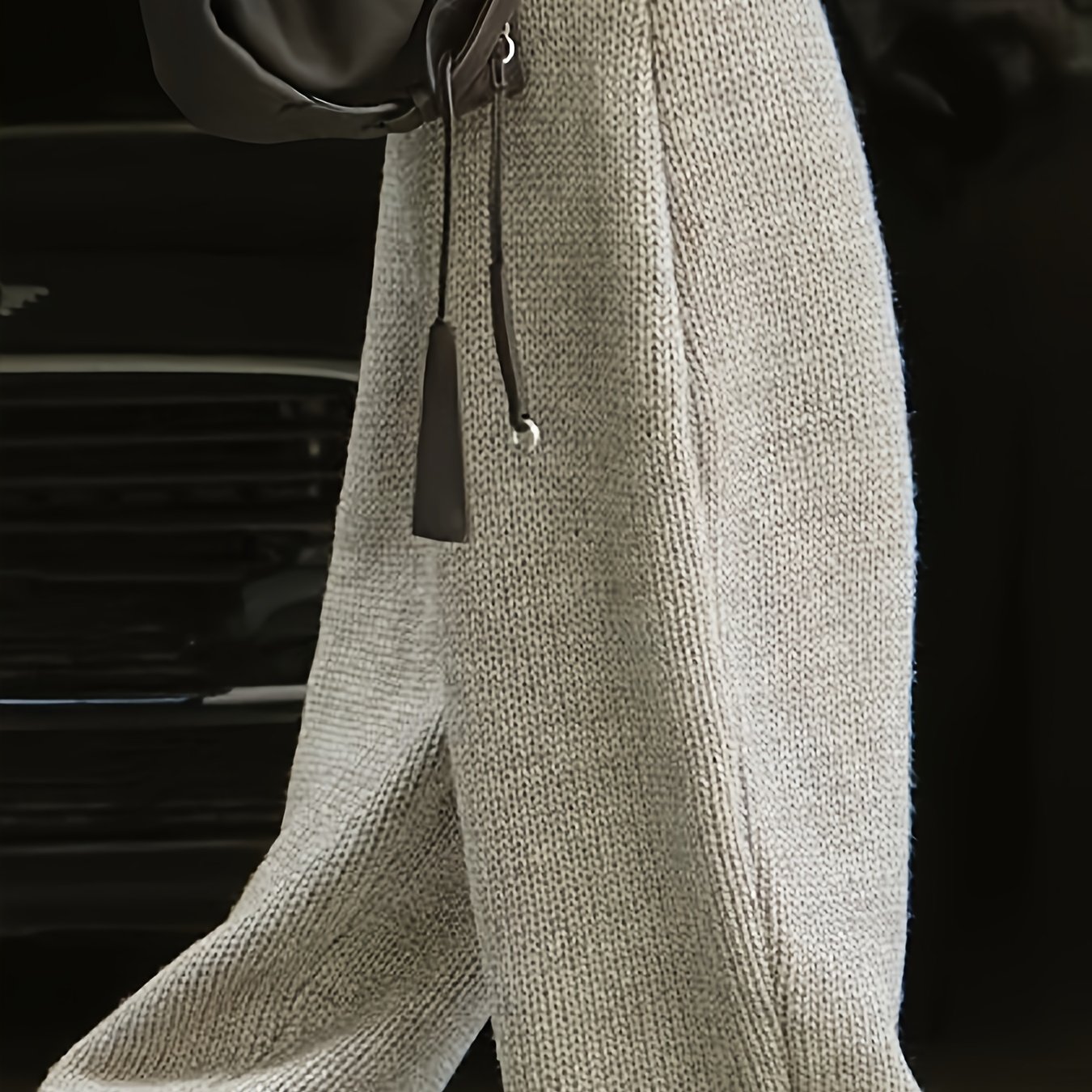 TEMU 여성용 우아한 루즈핏 스웨터 팬츠 - 사계절용 트라우저, 베이지/중성 색상, 일상 및 정장용 - 여성 캐주얼 바지, 레이디스 스웨터 팬츠, 편안한 의류, 편안한 핏 트라우저, 내구성 있는 니트웨어, 다용도 하의, 클래식 디자인, 부드러운 원단, 스타일리시 하의, 오피스웨어