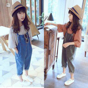 주니어 초등학생 여아 남아 키즈 데님 반바지 와이드 부츠컷 구제 찢청 버뮤다 중청 멜빵 청바지 의류