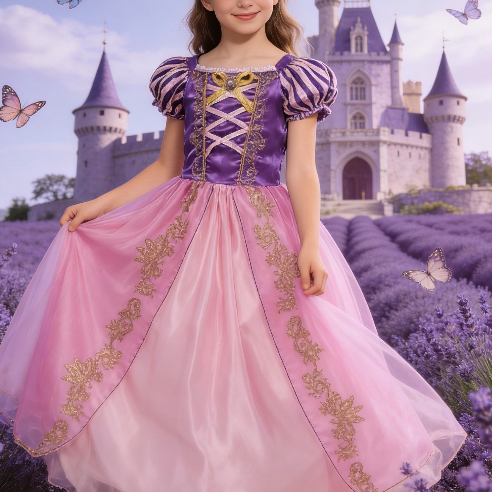 TEMU 여아 캐주얼 의상, 딥 퍼플 상의와 라이트 핑크 스커트, 밑단에 금색 프린트, 생일 파티 복장, 다양한 축제 의상, 외출용 사진 촬영 의상, 깜짝 요소