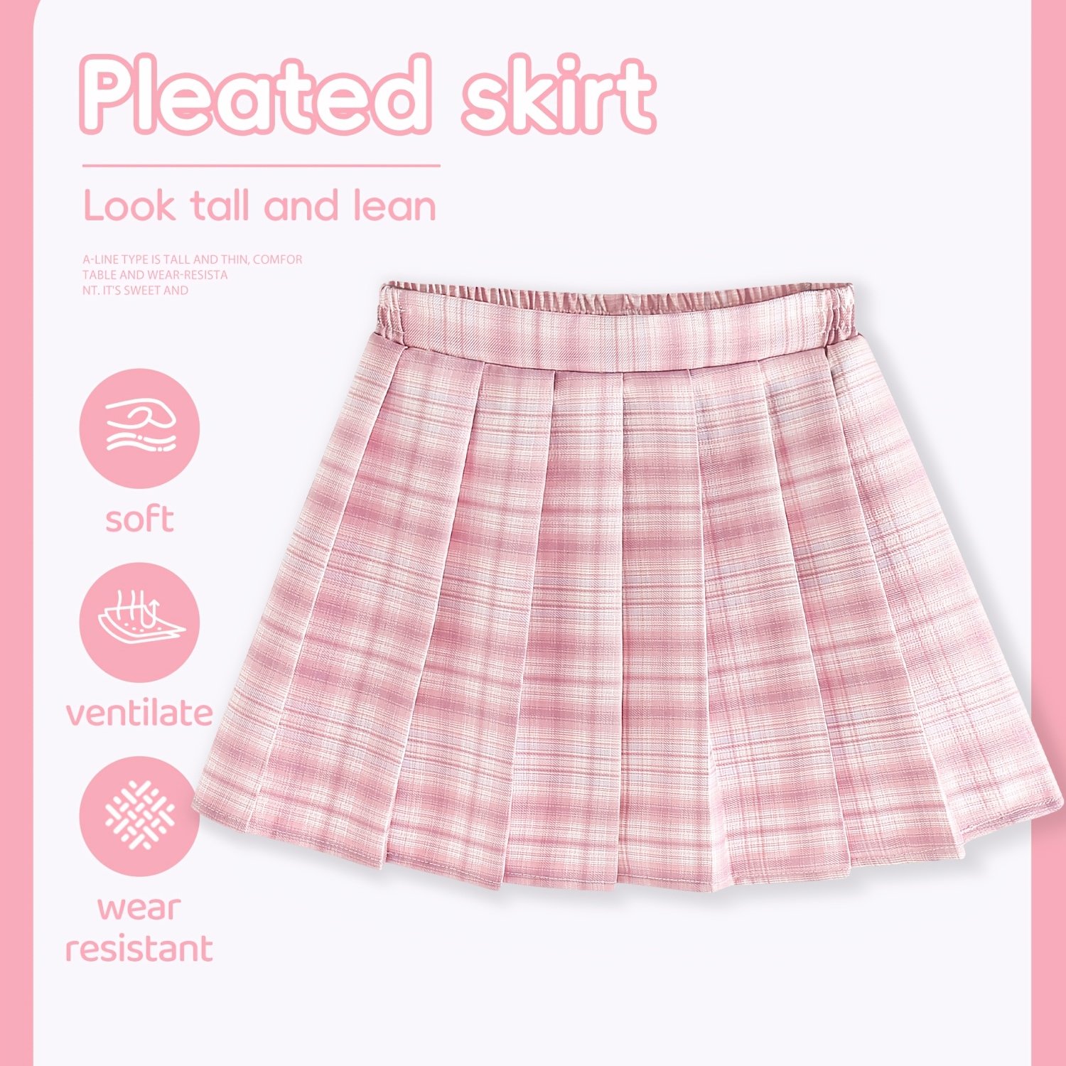 TEMU MIANZHI 브랜드 1개, 여아 스커트, 봄/여름 스타일, 학교 스타일, 플리츠 스커트, 핑크 체크 스커트, 노출 방지, 스위트하고 귀여운, 어린 아이들을 위한, 짧은 스커트, 내구성, 오래 지속, 스타일리시하고 트렌디함, 학교룩에 적합