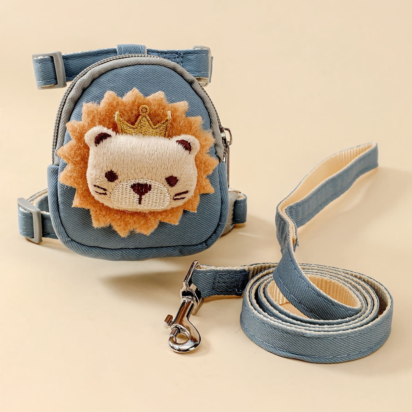 TEMU 1 세트 만화 플러시 인형 장식 개 허스 및 리드 세트 - 편안한 나일론, 애완 동물 식품 또는 폐기물 가방 수납 백팩, 목줄 및 리드 콤보 소형에서 중형 개 또는 고양이, 폴리에스터 섬유, 4피트 미만 길이, 배터리 없음