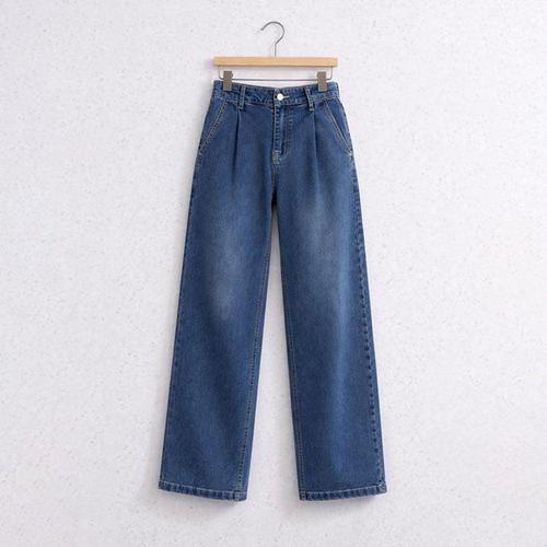여성 앞주름 와이드 청바지 데님 팬츠 통바지 진청 WFN3LTO