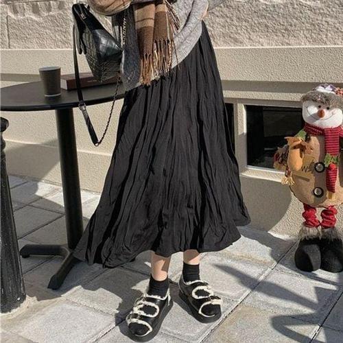 [에이치플러스몰]주름 밴드라인하이웨스트 미니멀 롱스커트 클래식