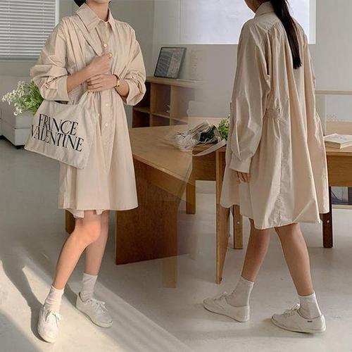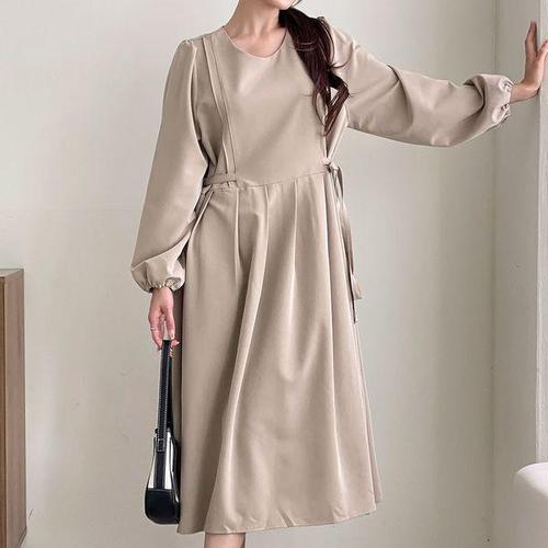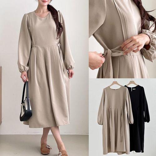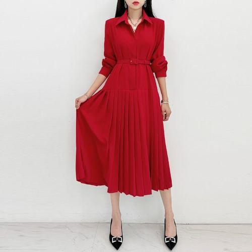 하객 원피스 허리벨트 주름 플리츠 카라넥 단추 여성 데일리 출근 코디