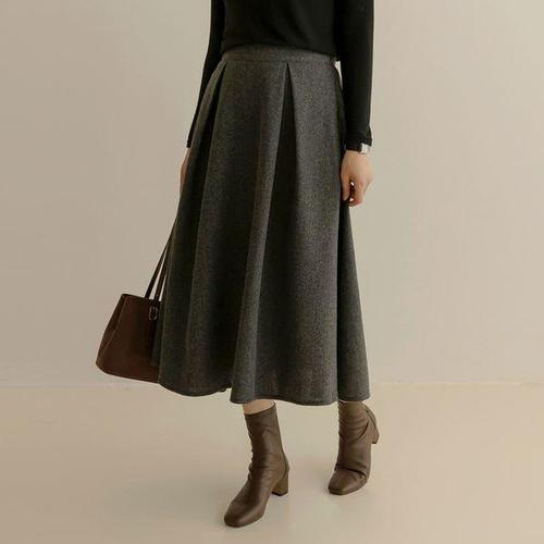 데일리앤 비네트 밴딩 플리츠 모직 롱 스커트