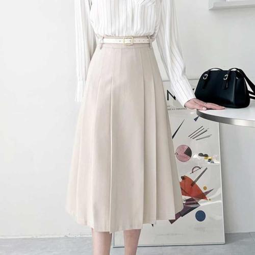 봄 가을 클래식 플리츠 미디 롱 주름 벨트 셋트 치마 스커트 캐주얼 모임 출근