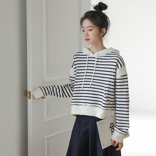 여성 단가라 후드티 1P 데일리 캐주얼 줄무늬 티셔츠 WE0D2AF