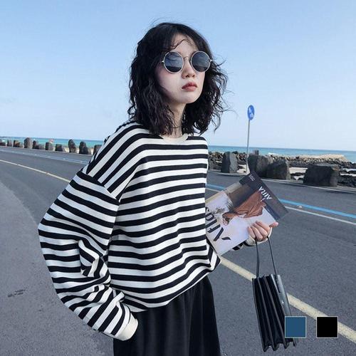 [셀러허브_여성트랜드패션]Rly 여성맨투맨티셔츠 줄무늬 여성긴팔티 여성 여자맨