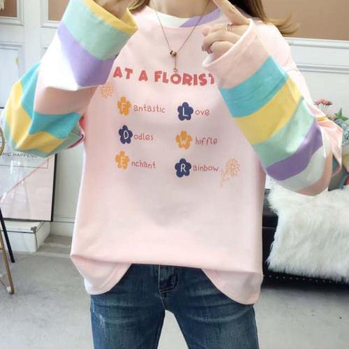[셀럽하우스]여자 SYSO0165 줄무늬 루즈핏 간절기 맨투맨티 가을 긴팔티