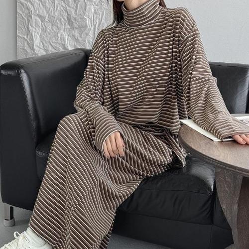 [다잇템][다잇템] 여자 줄무늬 큰사이즈 폴라티 긴치마 피치기모 세트_23705895_588872