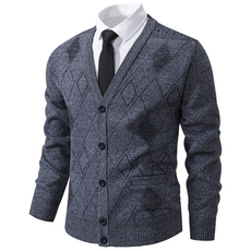 ZZL 남자브이넥 스웨터 카디건 버튼 니팅 스웨터 중년 남자 카주얼 니팅 탑 옷 기모 안감 아빠룩V-neck Men Sweater Cardigan
