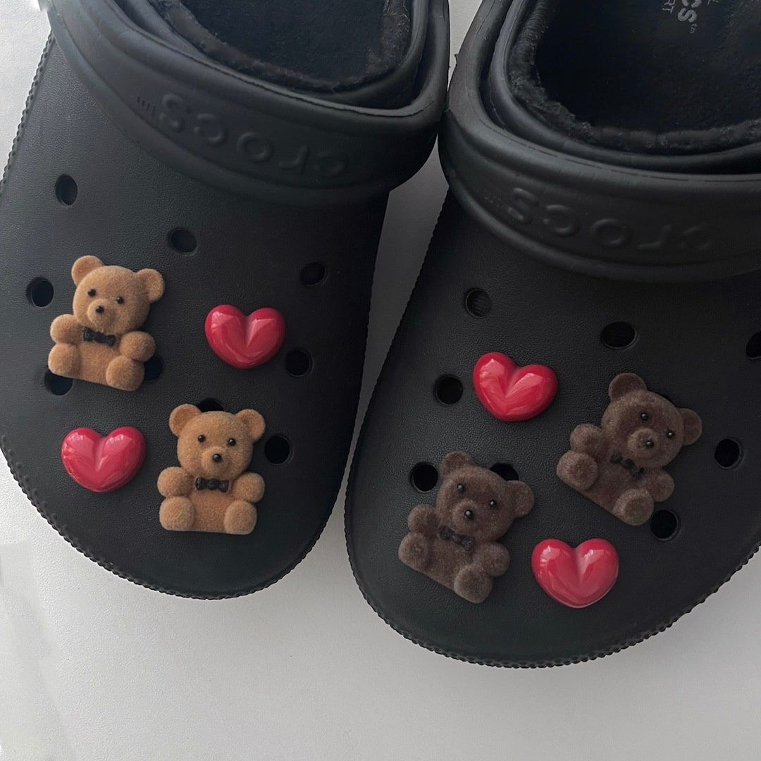 후로킹 테디베어 벨벳 곰돌이 하트 크록스호환 실내화 꾸미기 세트