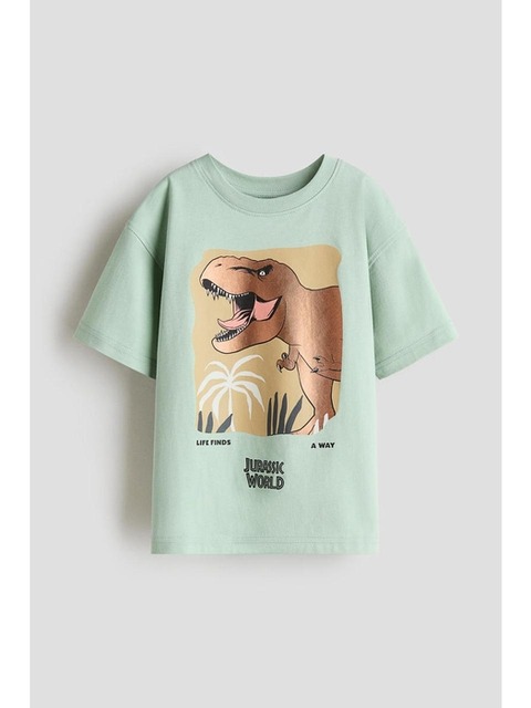 [에이치엔엠] 오버사이즈 프린트 티셔츠 라이트 그린/쥬라기 월드 1117472125