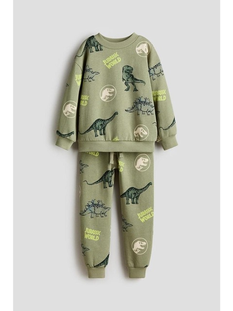 [에이치엔엠] 프린트 스웨트셔츠 2피스 세트 카키 그린/쥬라기 월드 1169768033