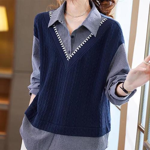 [패션시그널]브이넥 조끼레이어드 셔츠 블라우스 F32A97