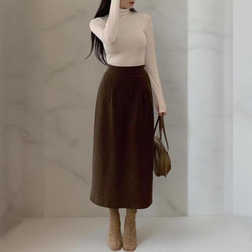 [옷자락] 여성 스웨이드 뒷밴딩 트임 H라인 긴 치마