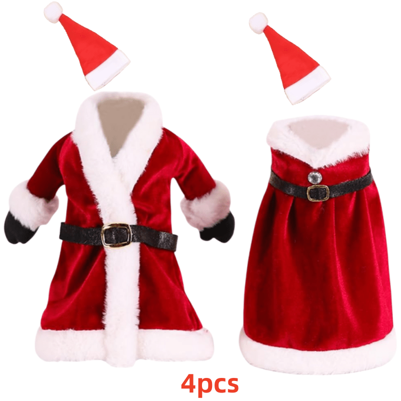 TEMU 4개 크리스마스 장식 세트 (산타 모자 포함), 창의적인 드레스 가운 (와인 포장 및 파티 선물용), 실내/실외 패션 장식