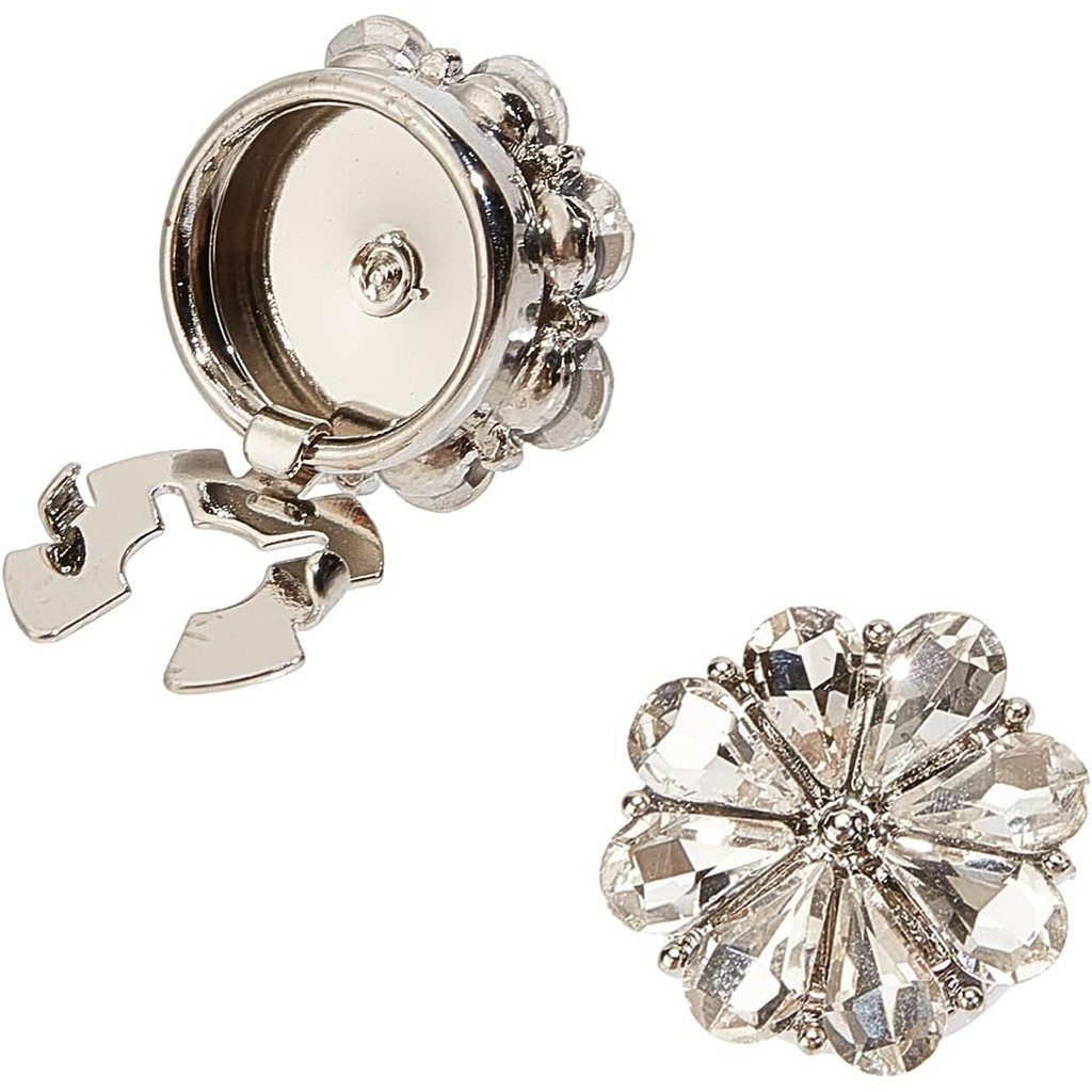 TEMU 2개 세트 우아한 라인스톤 꽃 버튼 커버, 바느질 없이 즉시 부착 가능한 드레스, 정장, 턱시도용 클립 장식 - 아연, 화이트