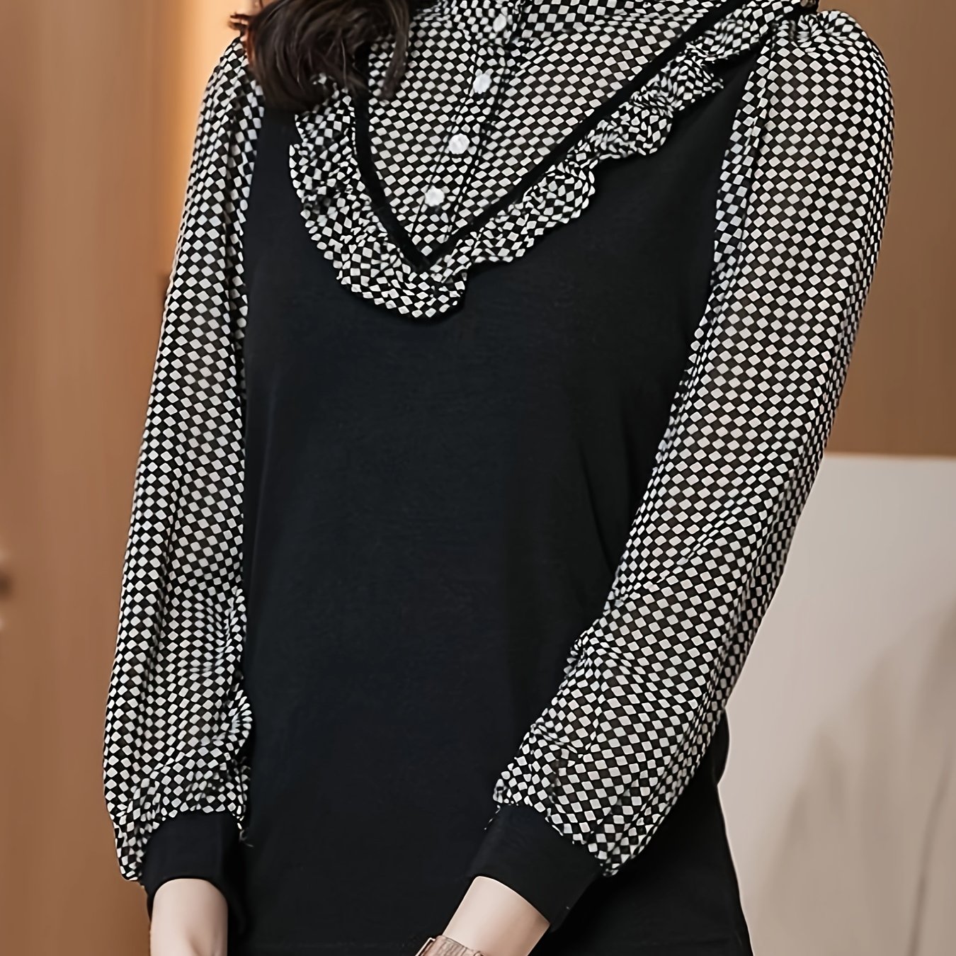 TEMU 봄과 가을 스타일리시 프린트 패치워크 셔츠