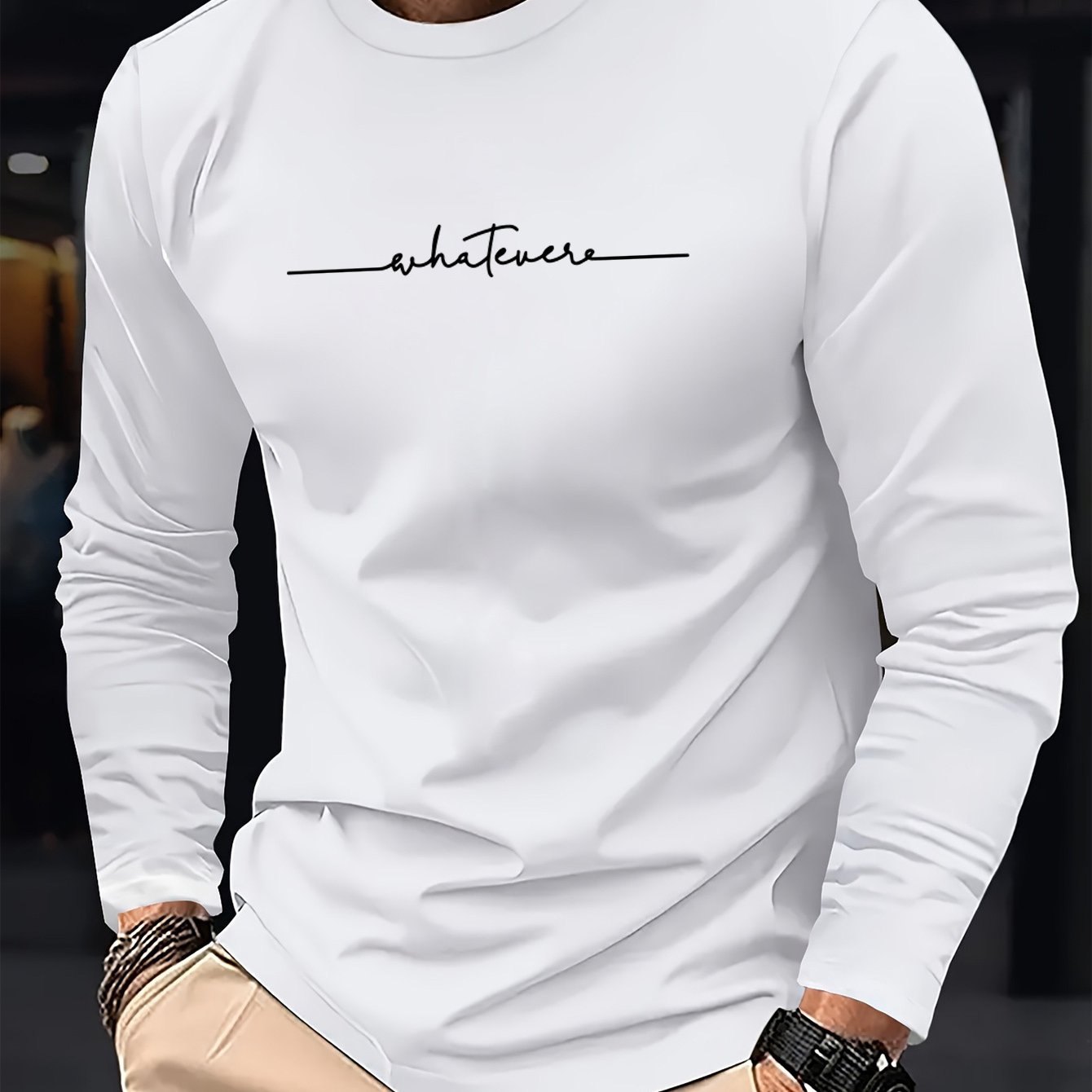 TEMU 남성용 라운드넥 긴팔 티셔츠, 스타일리시한 스트리트 스타일 통기성 티, 봄/여름 휴가에 적합한 캐주얼하고 편안한 상의, 남성 캐주얼 웨어 선물로 완벽