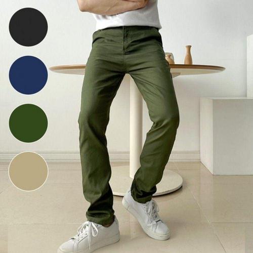 남성용 면 일자핏 캐주얼 치노 팬츠 데일리 바지 하의 WFLMDXQ