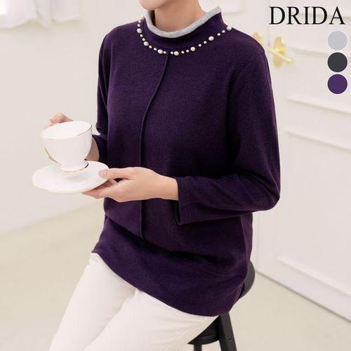 [드리다]여성 겨울 진주 반목 반폴라 빅사이즈 긴팔 티셔츠 40-50대 미시 중년여성 엄마옷 하객 출근 상..