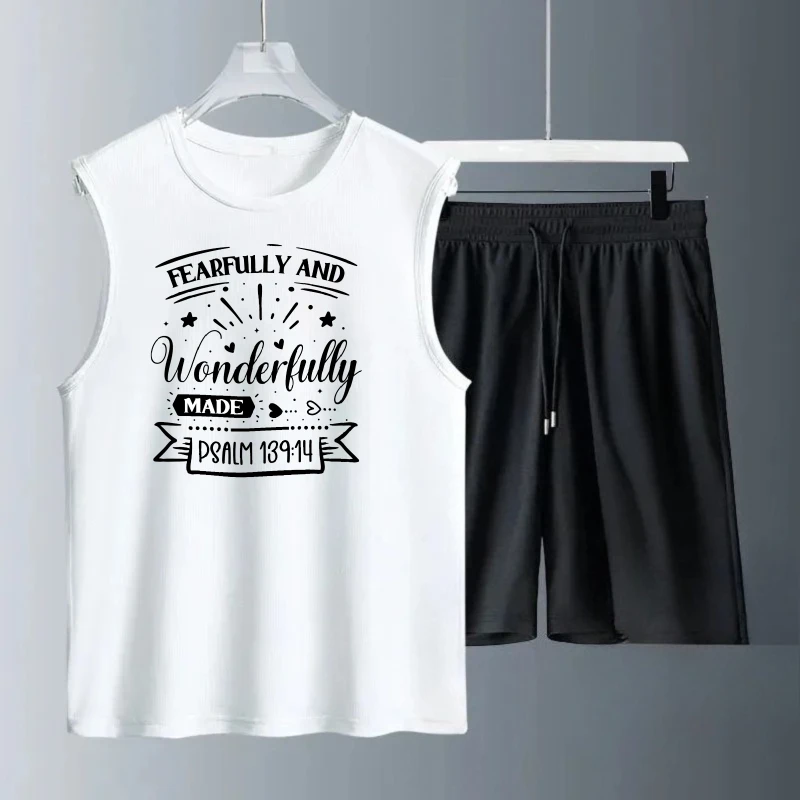 남성용 조끼 정장 여름 민소매 프린트 Fearfully And Wonderfully 탱크탑 + 반바지 의류 세트 남성용 트랙수트 세트