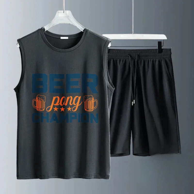 남성용 조끼 정장 여름 민소매 프린트 맥주 롱 챔피언 탱크탑 + 반바지 축구복 스포츠 정장 빠른 건조