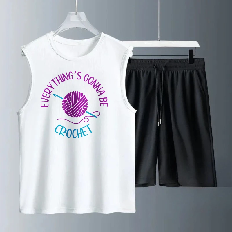 남성용 조끼 정장 여름 민소매 프린트 크로셰 탱크탑 + 반바지 축구 유니폼 남성 트레이닝복 남성 정장 빠른 배송