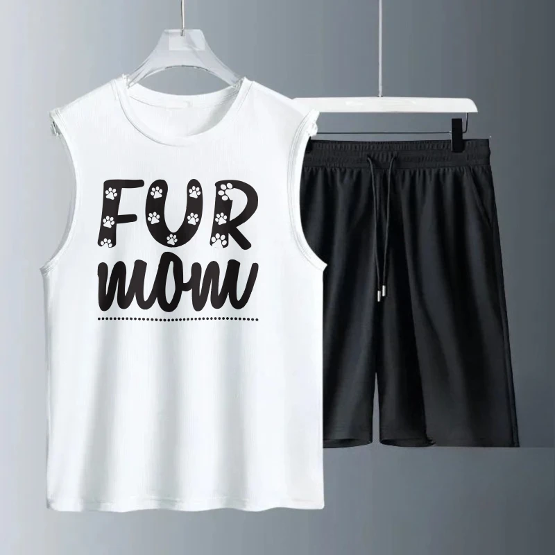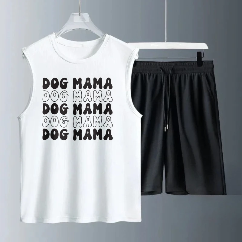 남성용 조끼 정장 여름 민소매 프린트 도그 마마 탱크탑 + 반바지 남성 세트 y2k 트랙수트 빠른 건조 2피스 세트
