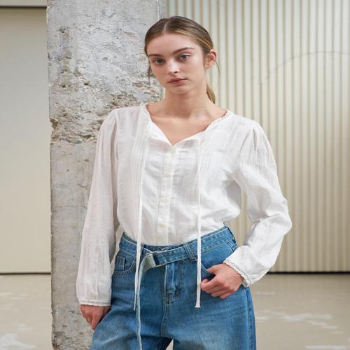 [GGPX]포인트 레이스 카라넥 오버핏 블라우스 (GPCBA044D)