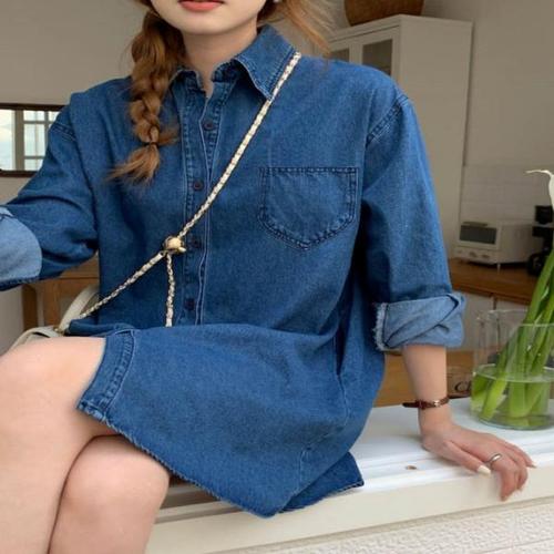 [오너클랜]인기상품 여성 데님 포켓 원피스 진청 연청 긴팔 셔츠형 아우터 [WDD84A7_250917]