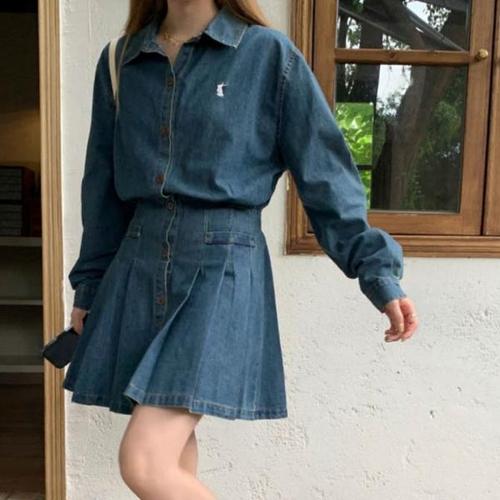 [오너클랜]인기상품 여자 청남방 플리츠 스커트 일체형 데님 원피스 [WDA781B_250917]
