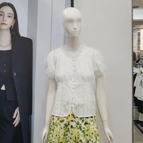 [무드무드] 챠유 펀칭 아일렛 반팔 블라우스