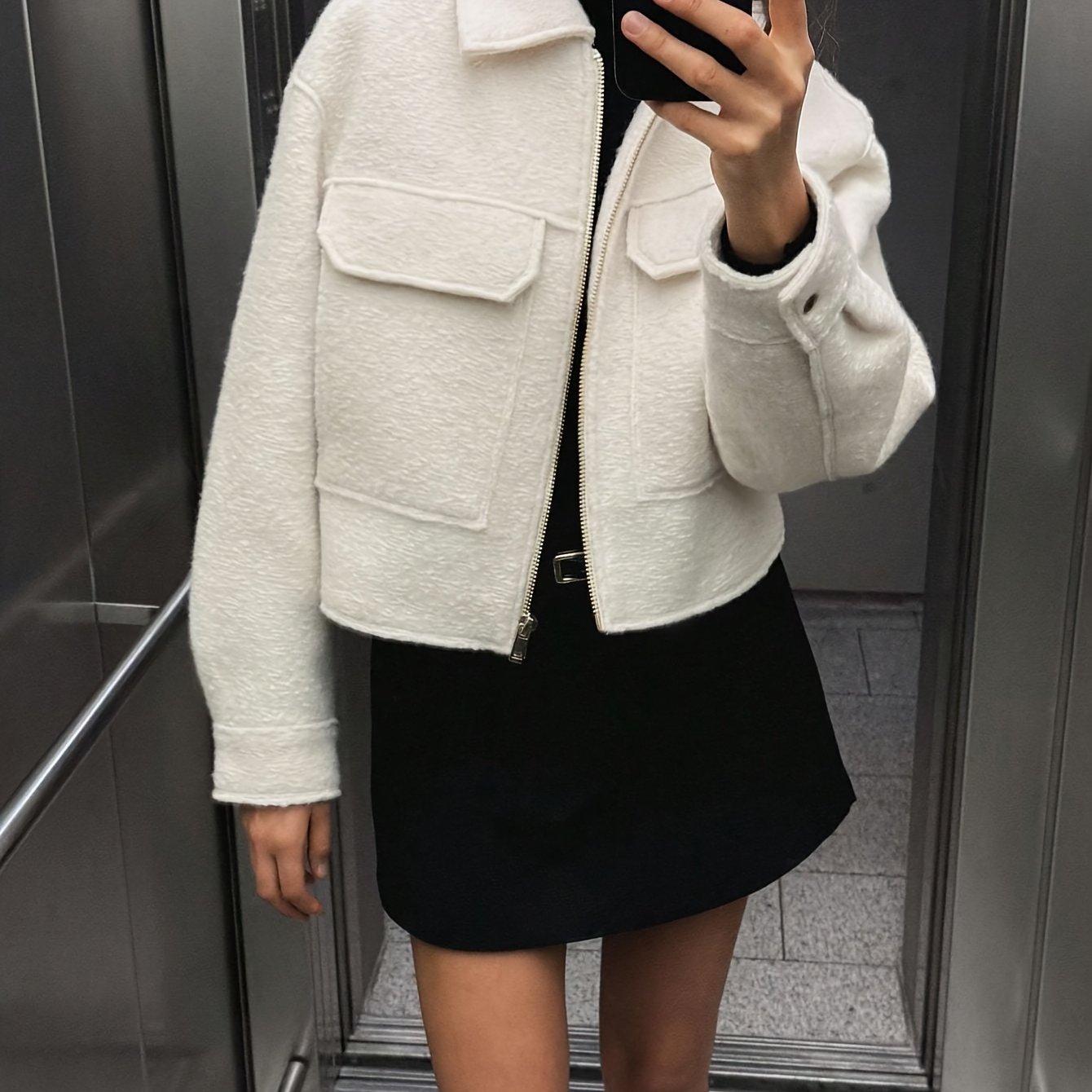 TEMU 아웃타 박스 여성용 캐주얼 재킷 - 지퍼 포켓, 롱 슬리브, 턴 칼라, 드롭 숄더, 오버사이즈, 트위드 소재, 우아하고 패셔너블한 데일리웨어, 외출, 파티, 가을/겨울, 크리스마스, 새해용