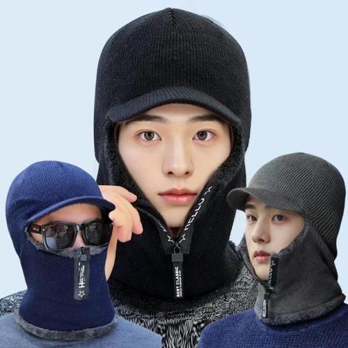 남성 겨울 모자 기모 안감 챙달린 비니 넥워머 마스크 지퍼비니 캡비니 겨울비니 겨울모자