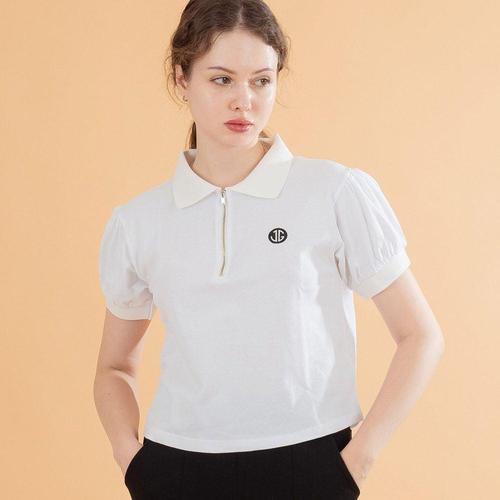 [모노무드]LMO 세미크롭 반팔티 반팔티 모던 울탑 레이디스풀슬리브 하프지퍼