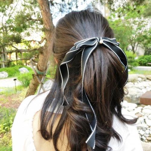 [기타 BRAND]수입 스티치 진주 골프리본핀 리본 롱 헤어삔 TA2193586